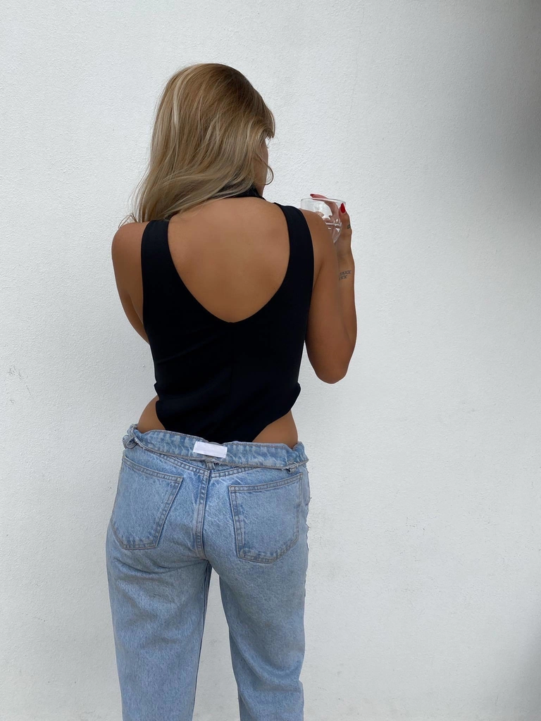 Body con cordones cruzados en parte delante y con bombacha para abrochar (NO INCLUYE GUANTES)