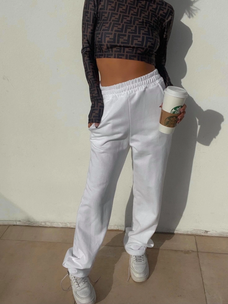 Jogging algodon rustico recto suelto con elastico cintura y bolsillos.