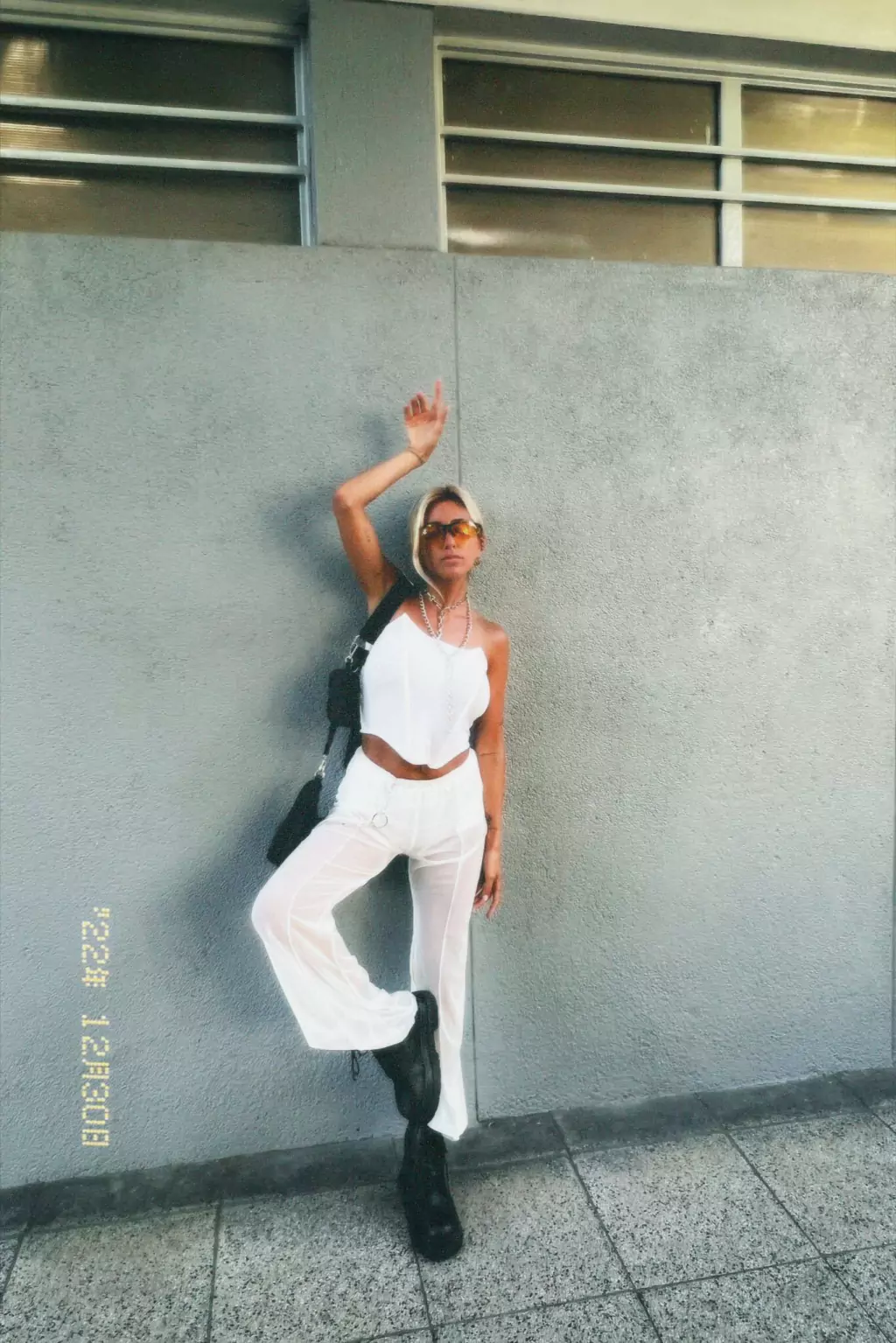 Pantalon recto con costuras visibles .Elastico en la cintura