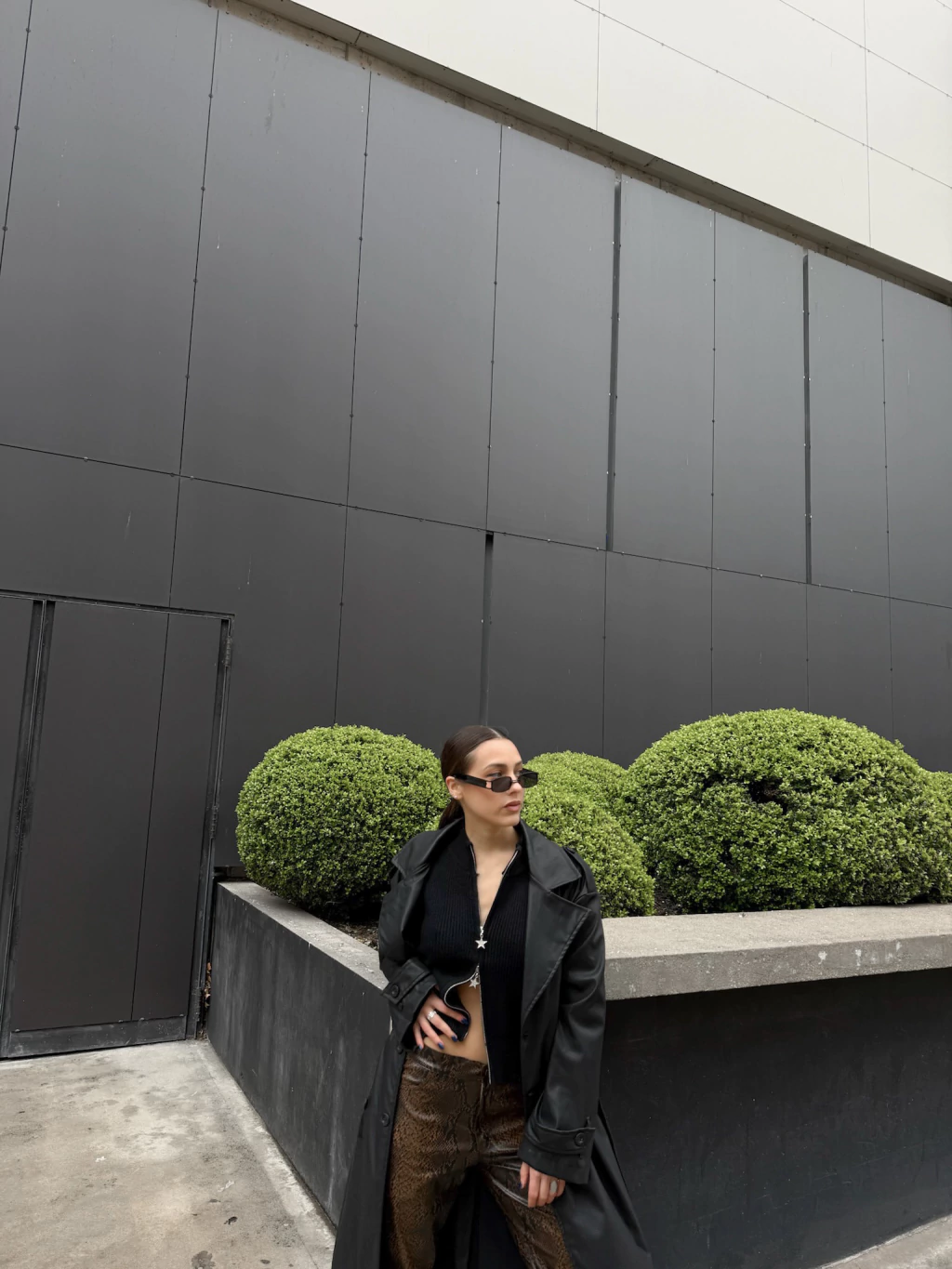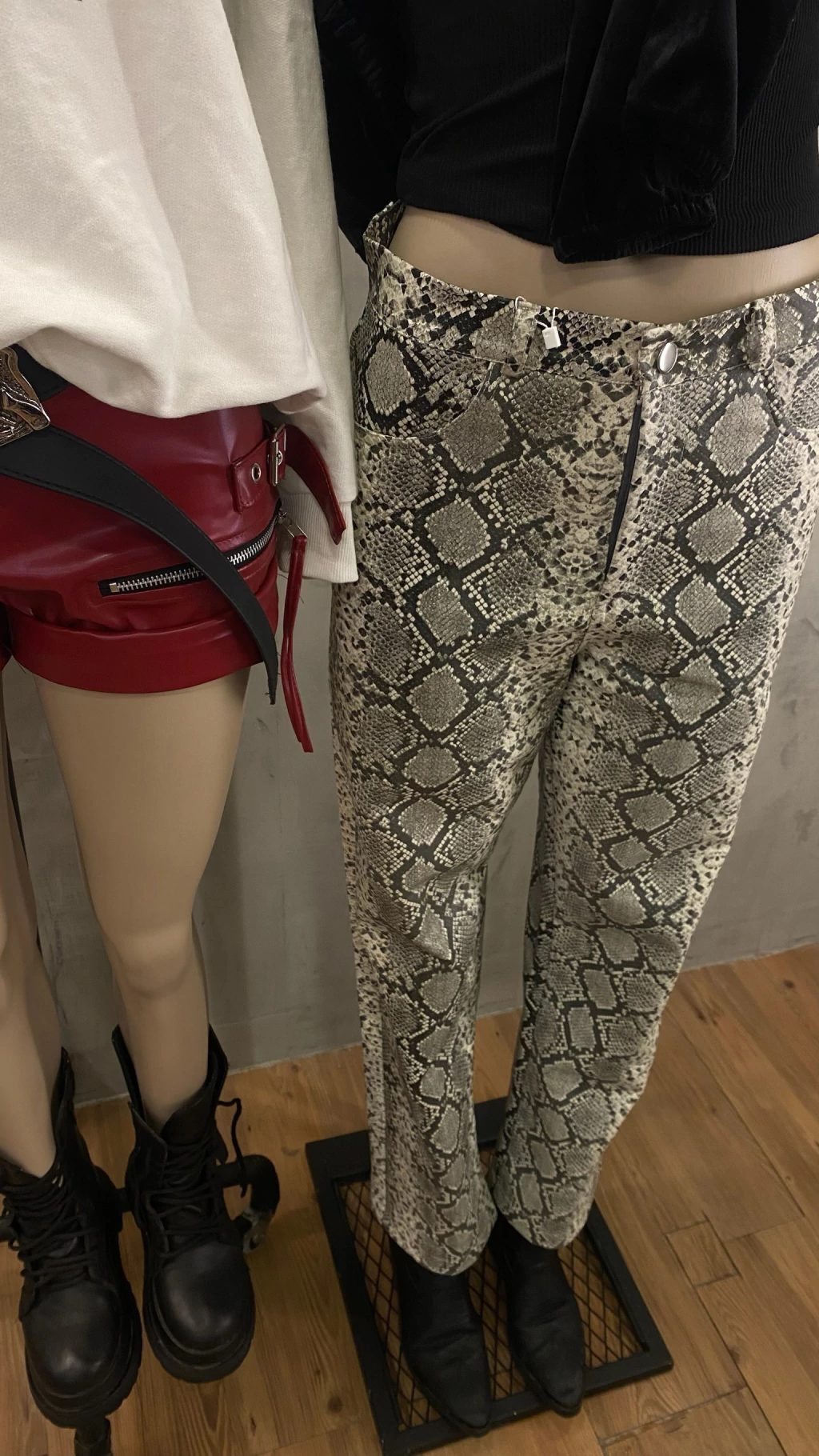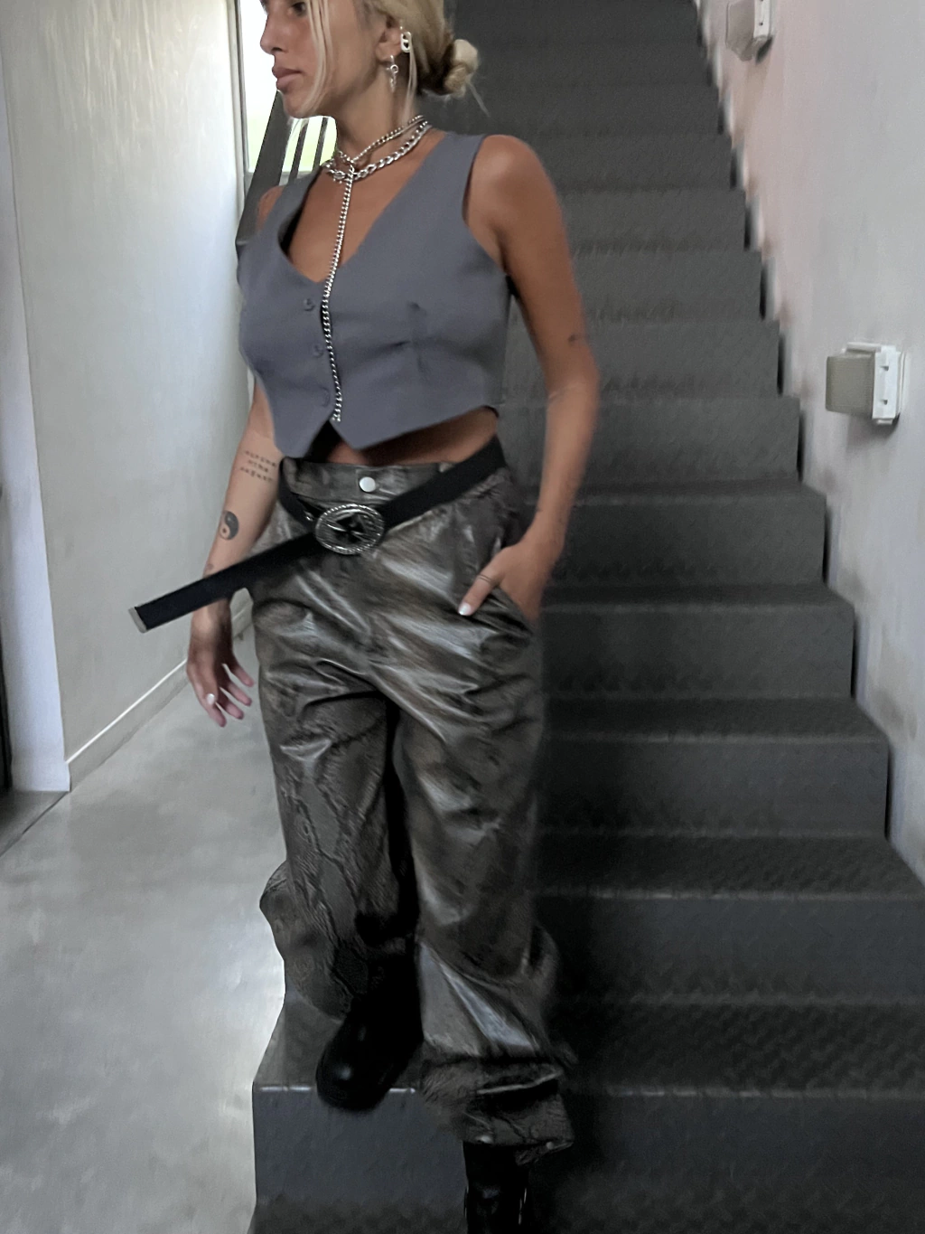 Pantalón ancho en cuero reptil ,tiro medio alto.