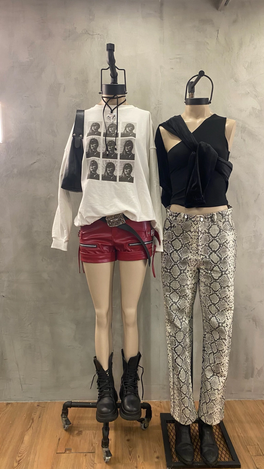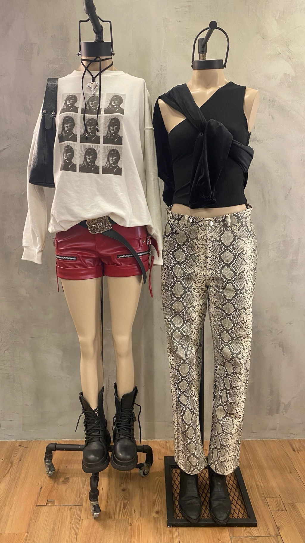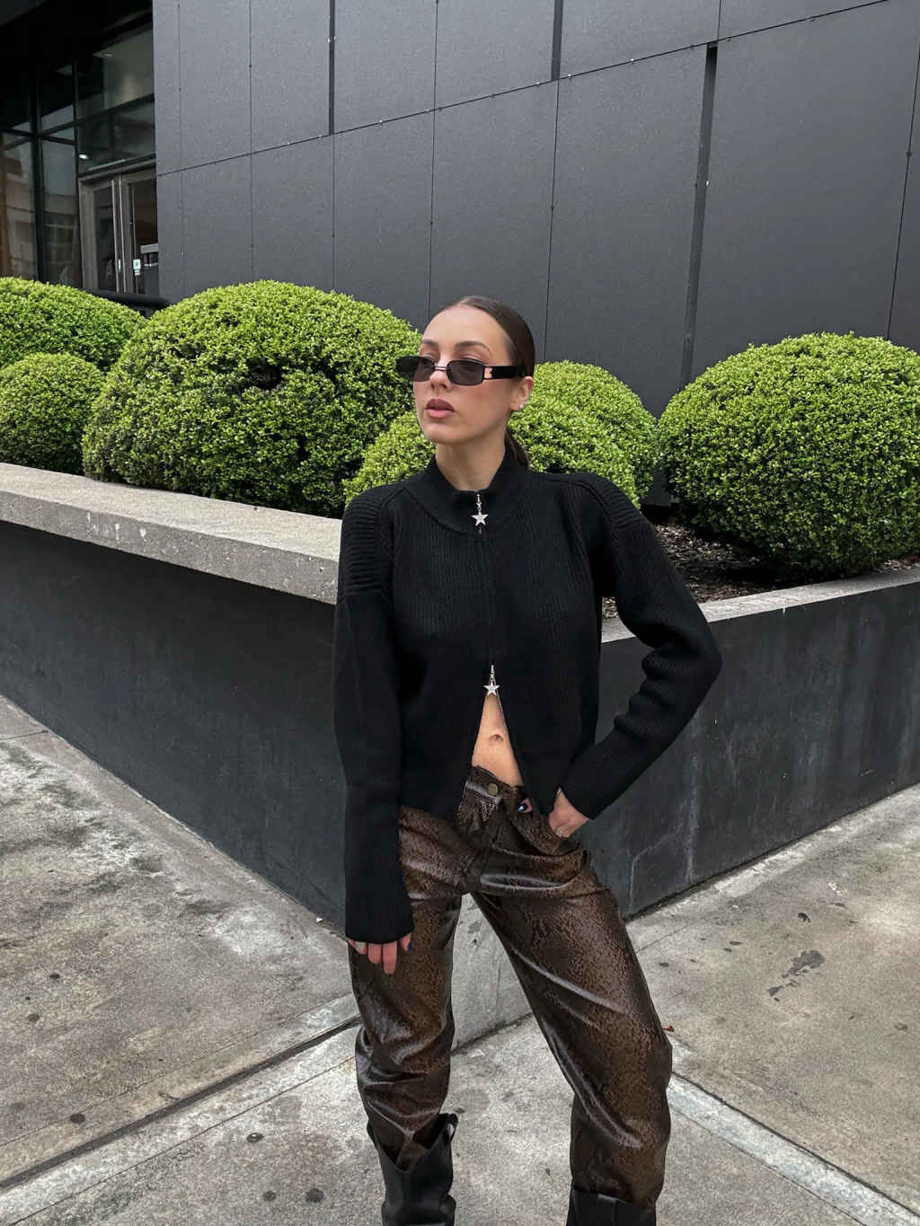 Pantalón ancho en cuero reptil ,tiro medio alto.