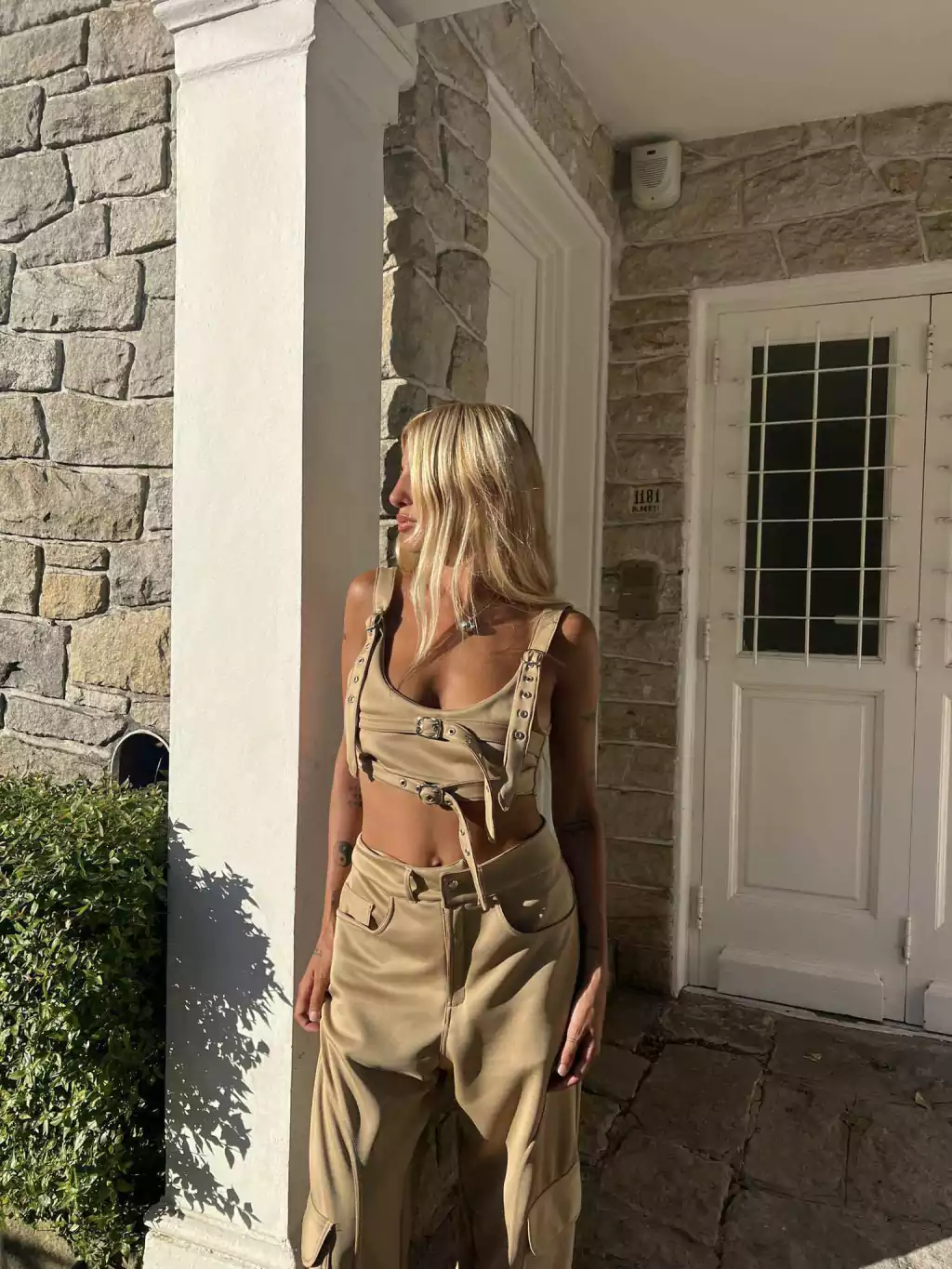 Top con hebilla para ajustar y ojalillos en microfibra embolsado
