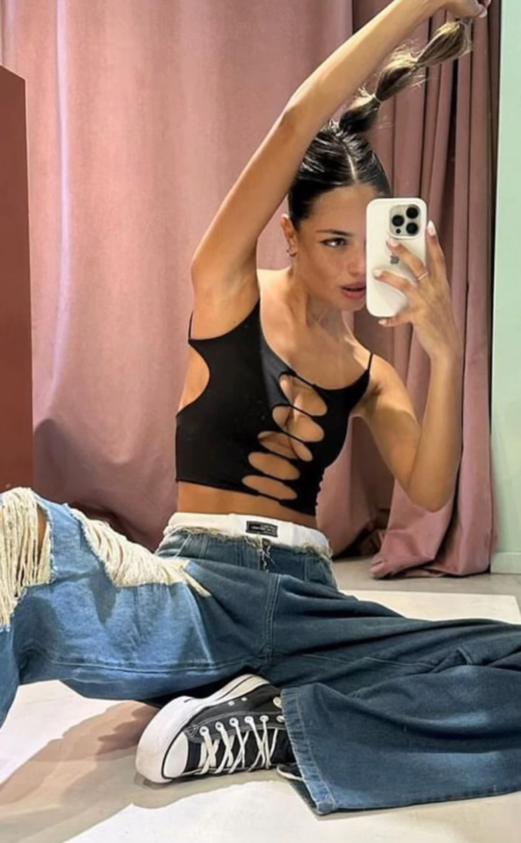 Top con elasticos cruzados en forma de estrella . (NO INCLUYE GUANTES)